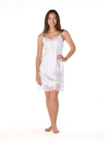 A portrait of enduring elegance, the lune short slip is crafted to transcend time. The V-shaped neckline frames the décolleté with subtle allure, while the hem-cut gracefully between hip and knee is finished with hand-cut Leavers lace, offering a refined touch of sensuality. Designed as a silk essential for everyday wear, it features adjustable straps and a flawless, close-to-body fit. For the bold, it transitions effortlessly into loungewear; paired with a jacket or cardigan, it becomes where quiet comfort meets effortless beauty.