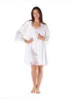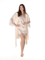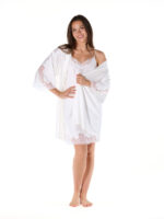 Unlike others, the sleeves are adorned with Leavers lace from wrist to elbow, a detail that elevates the piece with quiet opulence. By day or by night, it pairs effortlessly with a lace slip for a loungewear look that feels both intimate and refined.