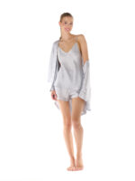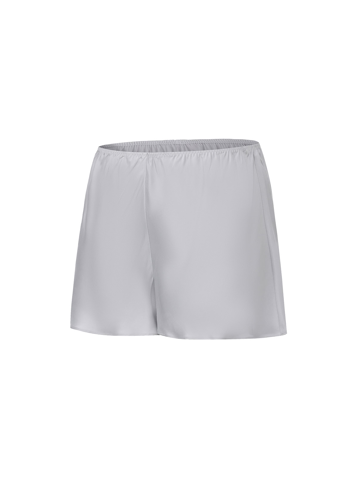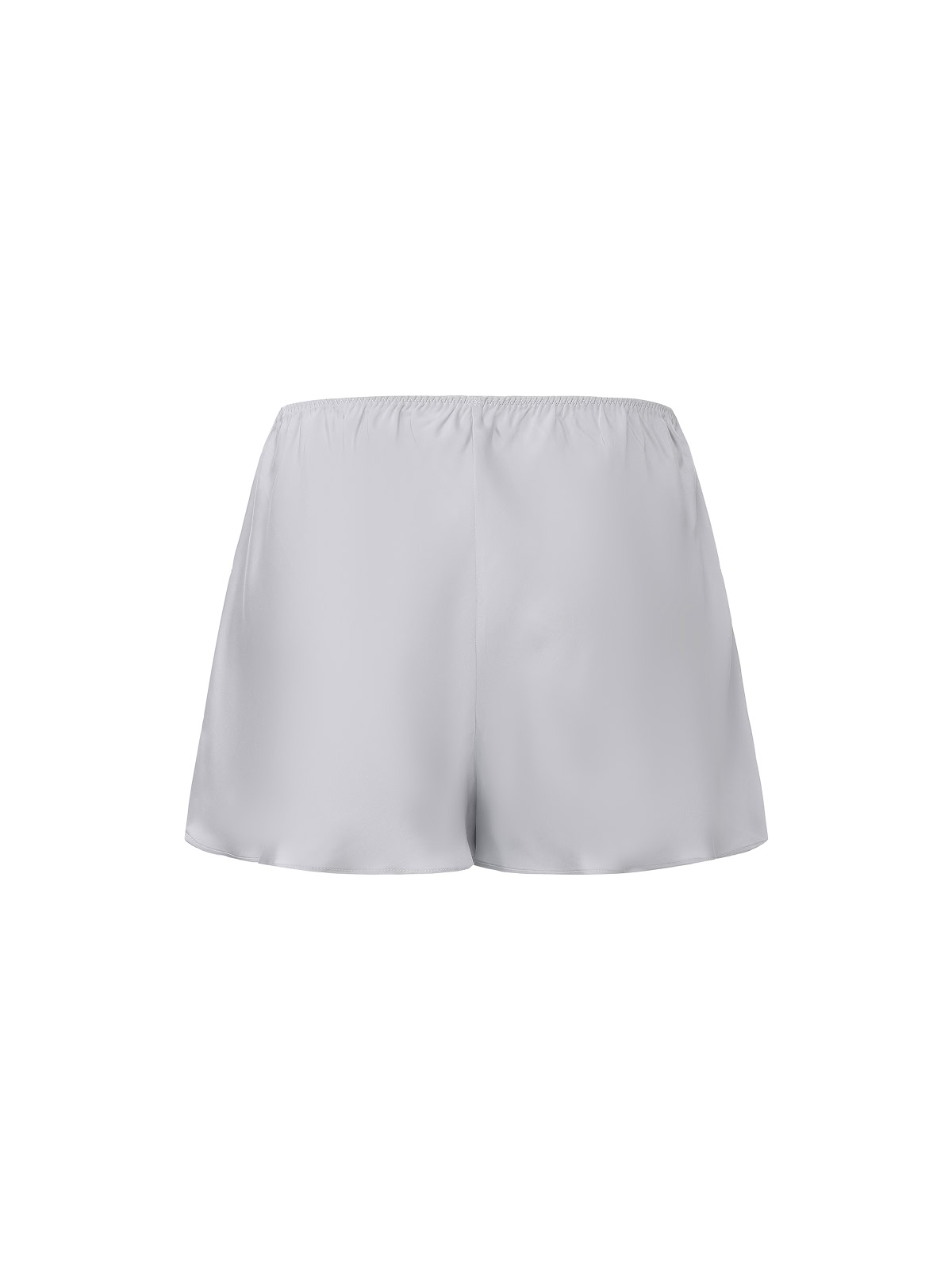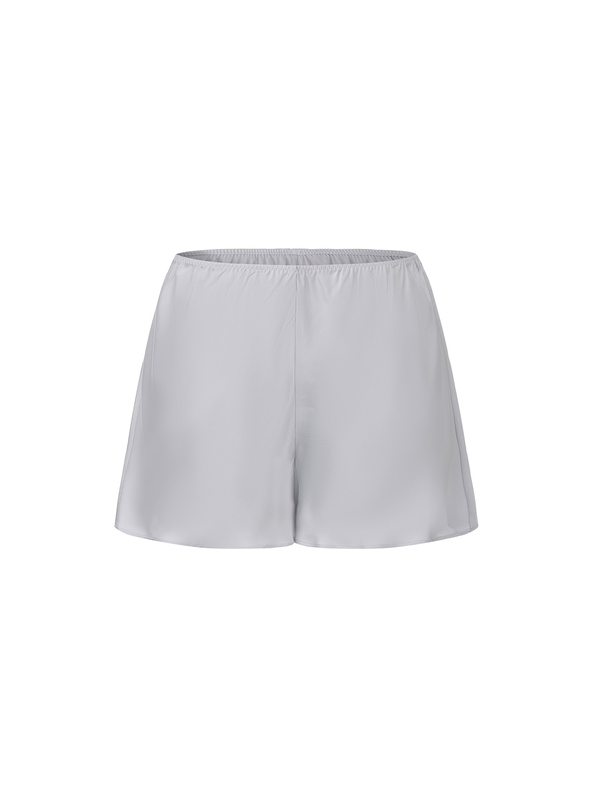 The silver mist short is a classic sleepwear with a contemporary finish, perfect for everyday. A silk essential in a mini length, it is finished with internal French seams for a clean, refined look. Capturing the essence of modern elegance, it flows in a fluid silhouette with a premium feel. Crafted from 100% silk in sand-washed satin, it offers a suede-like softness that lends a subtle texture, one that makes the silver hue glow with quiet radiance.